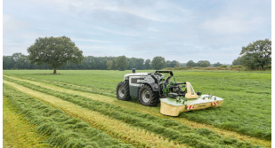 该驱动单元使用可产生高达 170kW (230hp) 的柴油电力驱动器,旨在满足上述过程中使用的机具的功率输入要求。驱动力通过电力传输到车轮和动力输出装置,并从那里传输到与三点连杆连接的机具。驱动单元拥有多个广泛的传感器系统,可监控周围环境和所附机具,以确保安全操作和最佳结果为主要目标。操作员通过移动设备控制和监控组合,通过通信模块和农业路由器(已建立的数据交换中心)传输作业和作业报告。