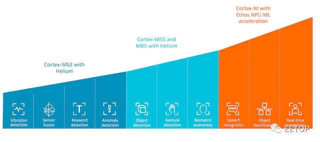 Arm 希望通过其最新的 Cortex 处理器来解决这些类型的设备问题。Cortex-M52 在 AI/ML 性能与尺寸、成本和面积之间取得了谨慎的平衡,使设计人员能够在一系列新应用中使用该处理器,而这在以前使用当前一代处理器是不可能实现的。