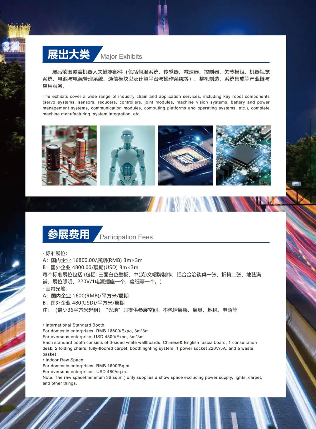 展品范围覆盖机器人关键零部件(包括伺服系统、传感器、减速器、控制器、关节模组、机器视觉系统、电池与电源管理系统、通信模块以及计算平台与操作系统等)、整机制造、系统集成等产业链与应用服务。