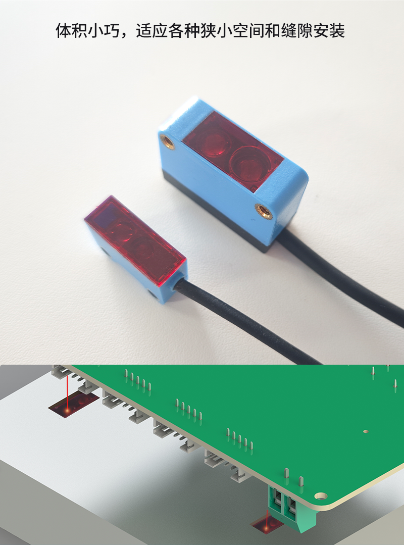 传统微型光电传感器在黑白材料检测时存在距离差,导致设备需频繁调整