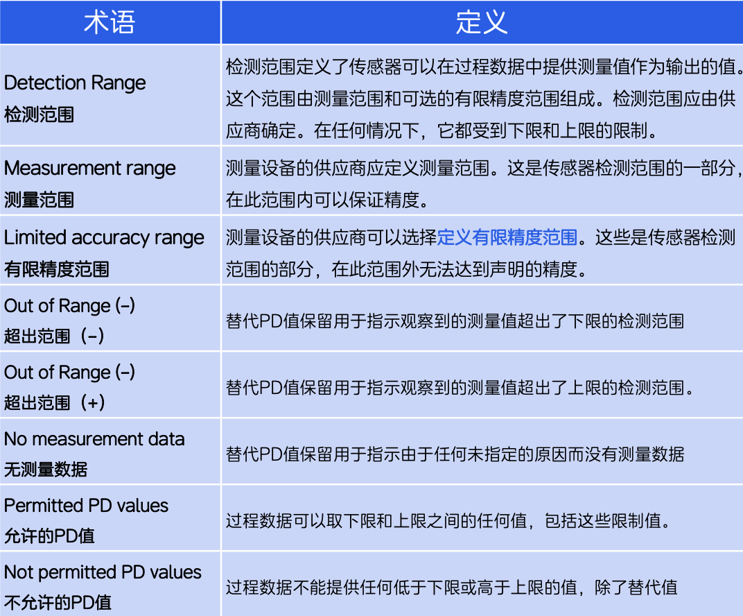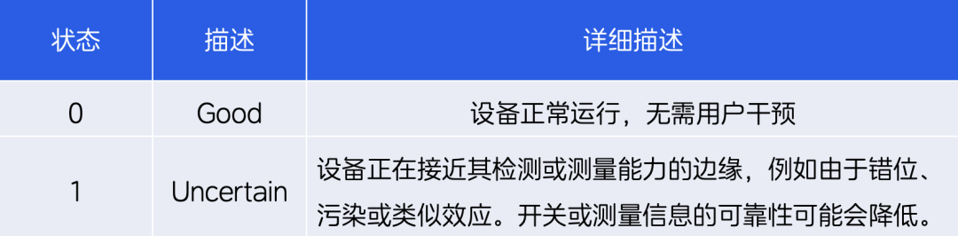 当传感器检测到其测量质量或者精度或者灵敏度减弱后,可以向用户发出“不确定性(Uncertainty)”信号,提醒用户及时维护,触发各种预防措施。每个独立的传感器通道都可以指示传感器的测量质量,具体如下图所示: