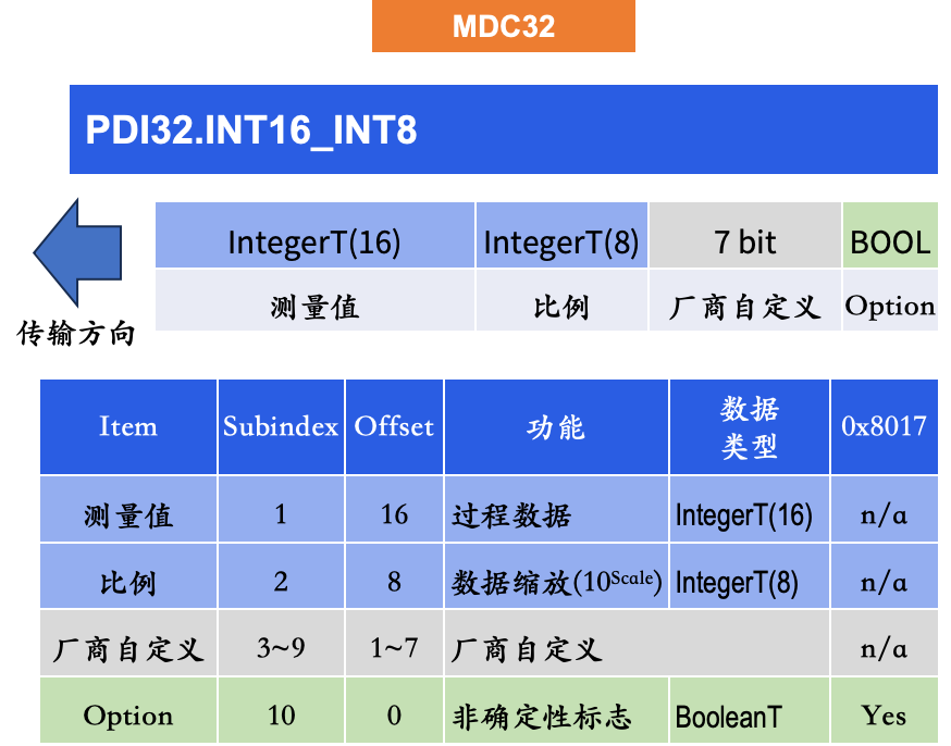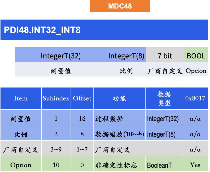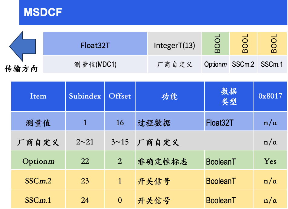 MSDCF相较于MSDC整型来讲,其测量值直接是浮点型数据,不再需要Scale,因此原Scale的8bit直接变成厂商自定义部分: