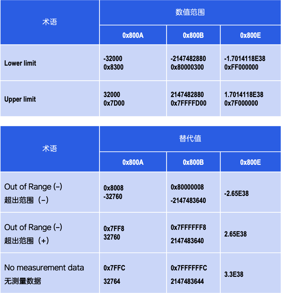 规范特意定了三个Function Class(0x800A、0x800B、0x800E)来对应不同精度的传感器,且规定了不同区域的替代值。